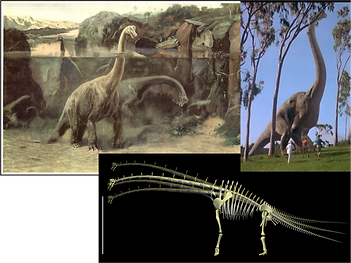Another dinosaur that we can analyze is the Velociraptor. In the movie they are huge creatures and, we know nowadays, that they were smaller than they show us. It’s also known that they were like birds, so they must have done a reconstruction with the forepaws on the sides of the body. The tail has not vertebrae as the film explains; it’s constituted by ossified tendons. And, as a last fact, the skull in the film is too high and the tail too short.